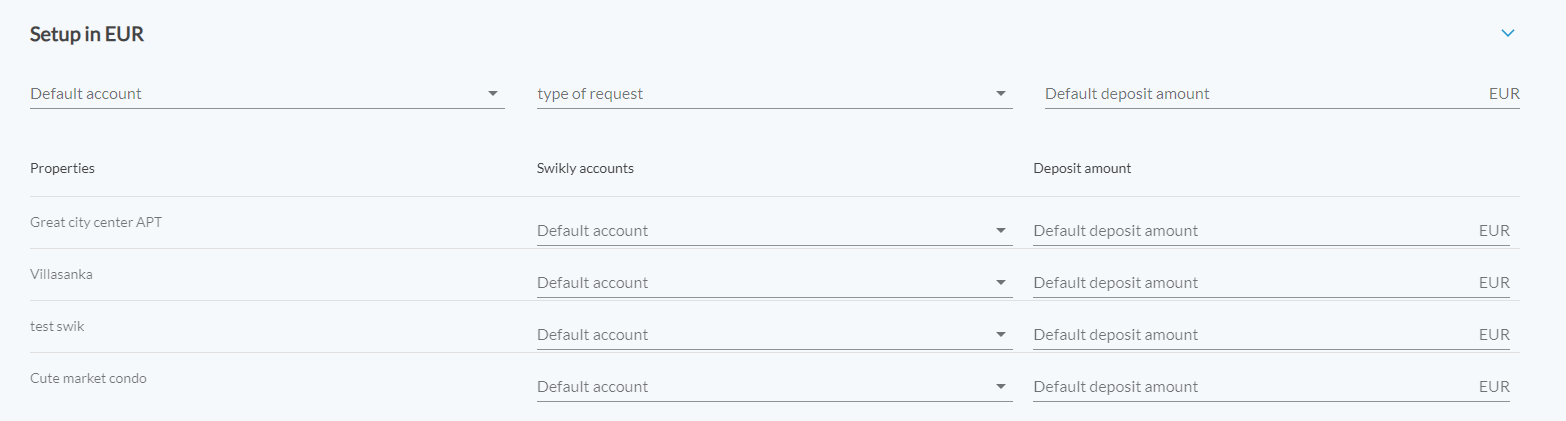 2. Set up security deposits in Swikly